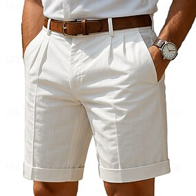 Homens Calção Shorts de linho Shorts sociais Shorts de verão Shorts de praia Bolsos Pregas Perna reta Tecido Conforto Respirável Curto Casual Diário Feriado Férias Moda Preto Branco Sem Elasticidade