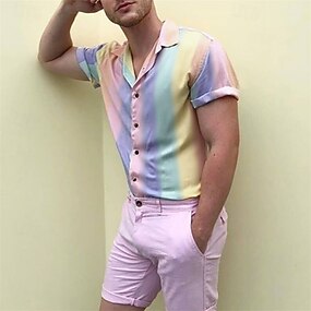 Homens Camisa Social camisa de verão Camisa cubana camisa de botão Camisa de acampamento Roxo Arco-íris Manga Curta Estampas Abstratas Aberto para a Lateral Rua Casual Botão para baixo Roupa Algodão