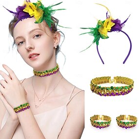 Carnaval 2026 - Acessórios de Samba do Carnaval do Rio - Conjunto de Acessórios de Fantasia de Mardi Gras para Mulheres Tiara de Flor de Pena