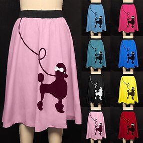 Retro Vintage Anos 50 Roupas Grease Saia Saias Poodle Estampado Fantasia Mulheres Carnaval Baile de Máscaras Casual / Diário Festa de Solteira Adulto Saia