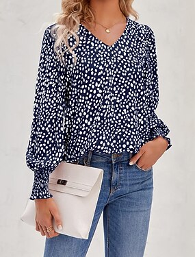 Mulheres Camiseta Imprimir Floral Casual Manga Longa Decote V Tops regulares Diário Para Noite Final de semana Preto Rosa Vinho Azul Marinha Verde Primavera Outono