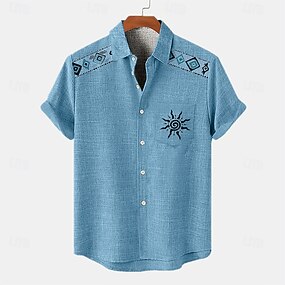 Homens Geométrica Linha Arte abstrata Camisa Social camisa de botão Manga Curta Business casual Diário Ao ar livre Férias Verão Primavera Aberto para a Lateral Impressão 3D Camisa tipo linho Azul