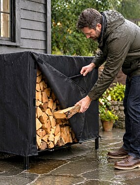 Capa para lenha em tecido Oxford resistente, impermeável, ideal para lareiras e fogueiras. Perfeita para armazenamento externo de lenha em estilo rústico.