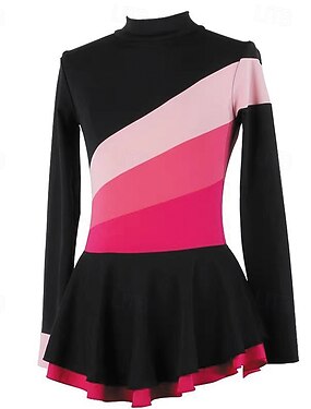 Vestidos para Patinação Artística Mulheres Para Meninas Patinação no Gelo Vestidos Preto Patchwork Thumbhole Com Transparência Elastano Com Stretch Treino Ensaio / Prática Profissional Roupa para
