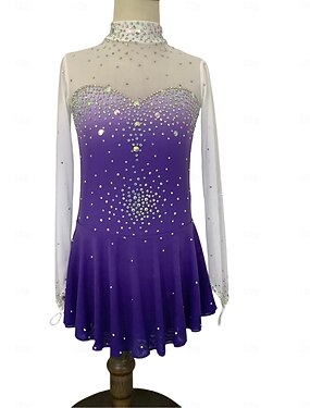 Vestidos para Patinação Artística Mulheres Para Meninas Patinação no Gelo Vestidos Violeta Patchwork Sem costas Com Transparência Elastano Com Stretch Treino Ensaio / Prática Profissional Roupa para