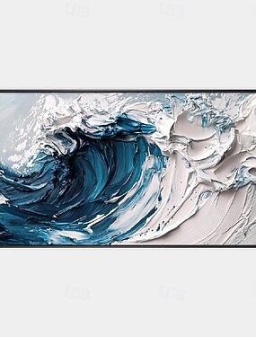 Pintura a óleo 3D feita à mão, cena vibrante de ondas do oceano com tons ricos e pinceladas ricas em textura, perfeita para decoração de casa moderna, exibindo arte detalhada e profundidade