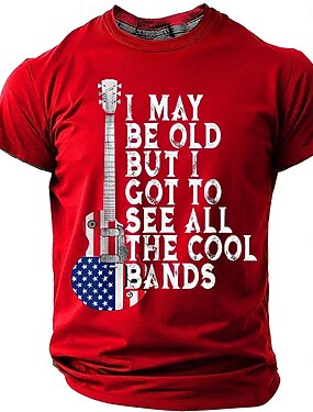 Camiseta masculina "Posso ser velho, mas vi todas as bandas legais" com estampa de guitarra elétrica, asas e escudo, estilo retrô, para amantes do rock and roll. Gola redonda, modelagem regular,