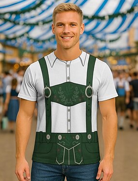 Japonesa/Curta Combinação de camisetas Lederhosen Bávaro Munique Alemão Alpino Herança Camiseta Arte Gráfica para Homens Adulto Impressão 3D para Carnaval Cerveja Oktoberfest Festa