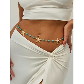 Cinto feminino com corrente de contas turquesa em forma de estrela do mar - joia de praia em liga boêmia para roupas de verão e looks de férias