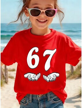 Para Meninas 3D Gráfico Gírias engraçadas 67 Camisa Camiseta Manga Curta Impressão 3D Verão Primavera Esportes Moda Roupa de rua Infantil 4-12 anos Gola Redonda Ao ar livre Casual Diário Normal