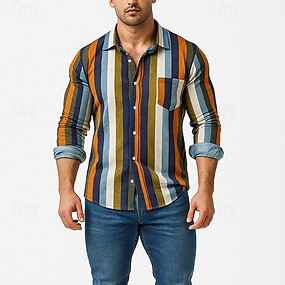 Homens Camisa Social Camisa casual camisa de praia camisa de botão Azul Cinzento Manga Longa Listrado Lapela Diário Férias Bolsos Roupa Moda Casual Confortável