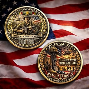 Moeda comemorativa dos veteranos do Vietnã, moeda colecionável patriótica em homenagem aos serviços prestados. &Sacrifício, todos deram algo, alguns deram tudo, projeto com soldado &Bandeira,