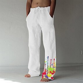 Homens Calças de linho Calça verão Com Cordão Cintura elástica Perna reta Tecido Conforto Respirável Comprimento total Casual Diário Praia Férias Moda Azul Preto Sem Elasticidade