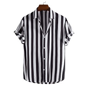 Homens Camisa de linho camisa de verão Roupa de Praia camisa de botão Tecido Férias Curise Preto Branco Verde Claro Rosa Manga Curta Aberto para a Lateral Verão Roupa