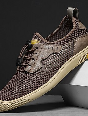 Tênis casual masculino de couro sintético com cadarço e tela, respirável e leve para conforto no dia a dia, passeios de verão e atividades relaxantes.