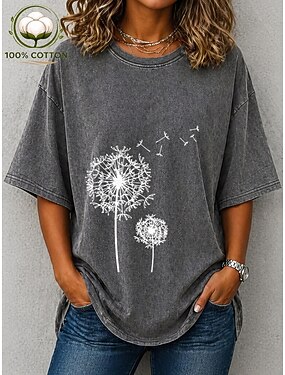Camiseta Feminina 100% Algodão Camiseta Vintage Lavada Tamanho Regular Estampada Gráfica Plantas Estilosa Básica Clássica Manga Curta Gola Redonda Tamanhos Regulares Casual Dia a Dia Azul Verde