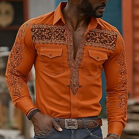 Homens Étnico Floral Intrincado Flores Camisa Social camisa ocidental Camisa de caubói Manga Longa Vintage retrô Ao ar livre Casual Roupa de Trabalho Primavera Outono Aberto para a Lateral Dois