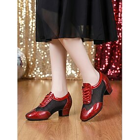 vermelho feminino &Sapatos de dança pretos com cadarço, sapatos profissionais de salto baixo para prática de dança de salão, danças latinas e tango. &dança social
