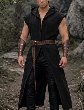 Retro Vintage Medieval Renascentista Cinto manto com capuz protetores de braço Sem Mangas Arqueiro Ranger Côr Sólida Fantasia Homens Fantasia Baile de Máscaras Festa feira renascentista LARP Adulto