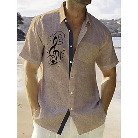 Homens camisa de verão Camisa casual camisa de praia camisa de botão Caqui Manga Curta Padrão Notas musicais Lapela Férias Havaiana Roupa Poliéster Moda Casual Confortável