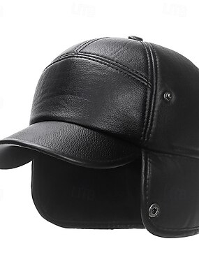 Homens Chapéu com protetores de orelha Chapéu de couro de inverno Chapéus de inverno Boné Quente de Inverno Boné de beisebol de inverno com protetores de orelha Preto Cinzento PU Tosão Moda