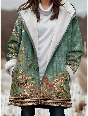 Mulheres Casaco de lã Casaco de pelúcia Casaco com capuz Manter Quente Respirável Zíper Bolsos Forrada com Fleece Casual Floral Férias Rua Casual Roupa Diária Zíper Longo Capuz Normal Manga Longa