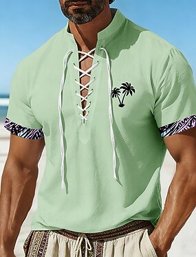 Homens Coqueiro Estampa Geométrica Étnico Camisa havaiana Camisa Pirata com Cadarço Camisas de Pulôver Manga Curta Havaiana Casual / Diário férias na praia Verão Primavera Colarinho Chinês Impressão