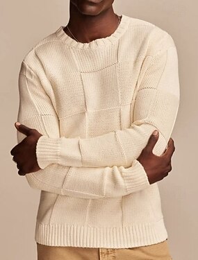 Homens Pulôver suéter Suéter de malha Estriado Crochê Tricotar Padrão Tricotado Tecido Gola Redonda Moda Básico Roupa Diária Encontro Roupa Outono & inverno Preto Branco S M L