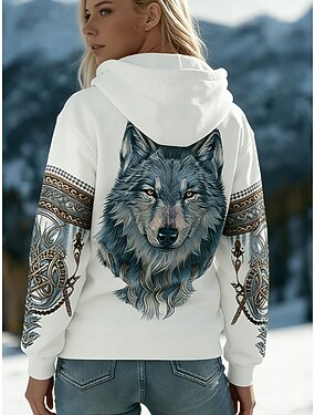 Mulheres Pulôver Moletom Com Capuz Imprimir Bolso frontal Gráfico Animal Tribal Vintage Casual Manga Longa Com Capuz Tops regulares Casual Rua Dia a Dia Branco Primavera Inverno