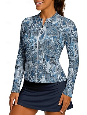 Mulheres Estampado Cashemere Camisa Esportiva Camisa de tênis Top de tênis Manga Longa Zíper Floral UPF50+ Resistente a UV Elasticidade Alta Pavio Humido Respirável Voleibal Tênis Golfe Colarinho