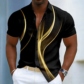 Homens Geométrica Linha Pólo Manga Curta Camisas polo Camisas de colarinho Business casual Ao ar livre Roupa Esportiva Roupa Diária Impressão 3D Botões Verão Azul Roxo Verde