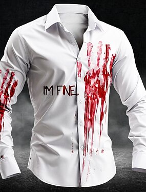 Homens Respingos de sangue Com letras estampadas Manchas de sangue Camisa Social camisa de botão Manga Longa Punk gótico escuro Feriado Streetwear Verão Primavera Aberto para a Lateral Impressão 3D