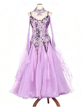 Dança Latina Vestido Cor Pura Recortes Lantejoula Mulheres Espetáculo Treino Sem Manga Alto Poliéster