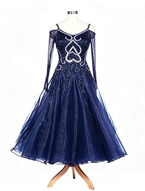 Dança de Salão Vestido Renda Cor Pura Mulheres Espetáculo Manga Longa Renda Tule