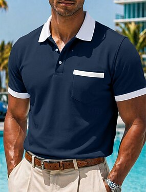 Homens Camisa de golfe Polos Piquê Casual Trabalho Lapela gola pólo com nervuras Manga Curta Básico Moderno Bloco de cor Patchwork Bolsos Primavera Verão Verão Normal Azul Branco Vermelho Cinzento
