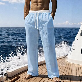 Mulheres Calças de linho de algodão Calças Calça verão Calças largas Sólido Clássico Mimolet Cintura Média Bolsos Folgado Design de cordão elástico Conforto Respirabilidade Macio Micro-Elástica