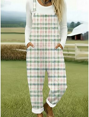 Womens Dungarees 100% Algodão Ativo Floral Sem Mangas Reto Decote Quadrado Com Bolso Férias Diário Ajuste Solto Branco Rosa Verde Verão