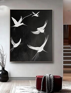 Pintura original pintada à mão em preto e branco de um pássaro voando, pintura a óleo sobre tela, pintura abstrata de animal, decoração moderna para sala de estar, presente para amantes da paz.