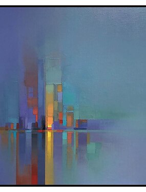 Pintura a óleo 100% feito à mão arte de parede pintada à mão em tela quadrada abstrata cidade paisagem contemporânea moderna decoração de casa decoração lona rolada com moldura esticada