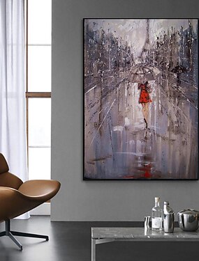 Pintura a óleo artesanal tela arte de parede decoração figura abstrata chuva rua paisagem para decoração de casa rolada sem moldura pintura não esticada
