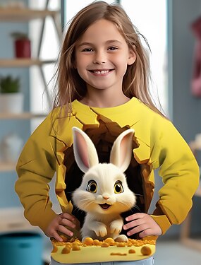 Para Meninas 3D Desenho Animado Coelho Moletom Manga Longa Impressão 3D Verão Outono Moda Roupa de rua Adorável Poliéster Infantil 3-12 anos Ao ar livre Casual Diário Normal