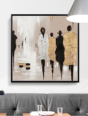 Pintura a óleo artesanal pintada à mão arte de parede abstrata pessoas pintura em tela decoração de casa quadro esticado pronto para pendurar