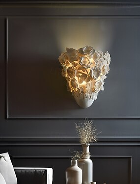Arandelas de parede modernas para interiores, com design de rosas em resina, perfeitas para quarto e sala de estar, luz branca quente, 110-240V.