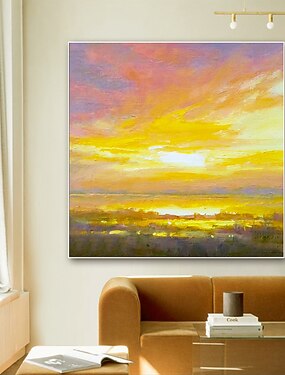 Pintura a óleo artesanal lona decoração da arte da parede moderna abstrata cenário do nascer do sol do mar para decoração de casa rolou sem moldura pintura não esticada