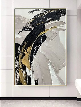 pintado à mão em azul escuro e dourado &Pintura a óleo minimalista com formas abstratas em tons de cinza, ideal para decorar paredes de salas de estar e quartos. Perfeita para sala de estar e quarto.
