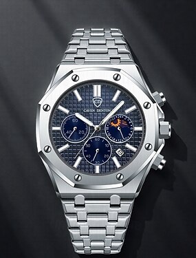 novo calendário de cinto de aço luminoso três olhos seis ponteiros multifunções fase da lua relógio de negócios masculino multifuncional simples relógio esportivo casual à prova d'água