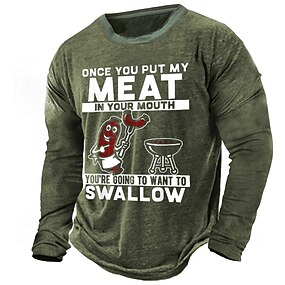 Camiseta Gráfica Masculina de Manga Longa "Uma Vez Que Você Coloca Minha Carne Na Sua Boca" Brincadeira Engraçada de Churrasco Hot Dog