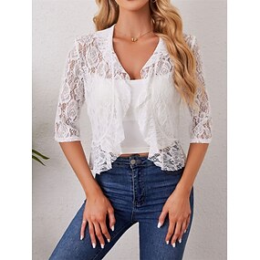 Camisa Feminina 100% Algodão Patchwork Casual Diário Fim de Semana Sólida Casual Semelhante a Linho Manga Curta Gola Redonda Branca Verão Primavera