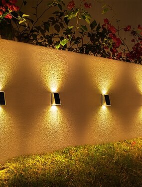 Conjunto de 2 luminárias solares de parede para exterior, à prova d'água IP65, com 4 LEDs cada, ideais para iluminação de jardim, quintal, cerca, escada, degraus, pátio, gramado e caminhos.