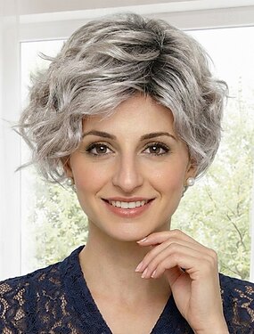 perucas curtas cacheadas cinza prateadas para mulheres brancas, cabelo sintético natural resistente ao calor, perucas completas para cosplay diário de senhoras idosas